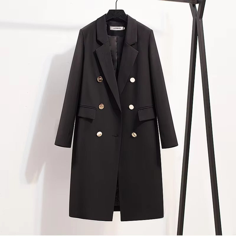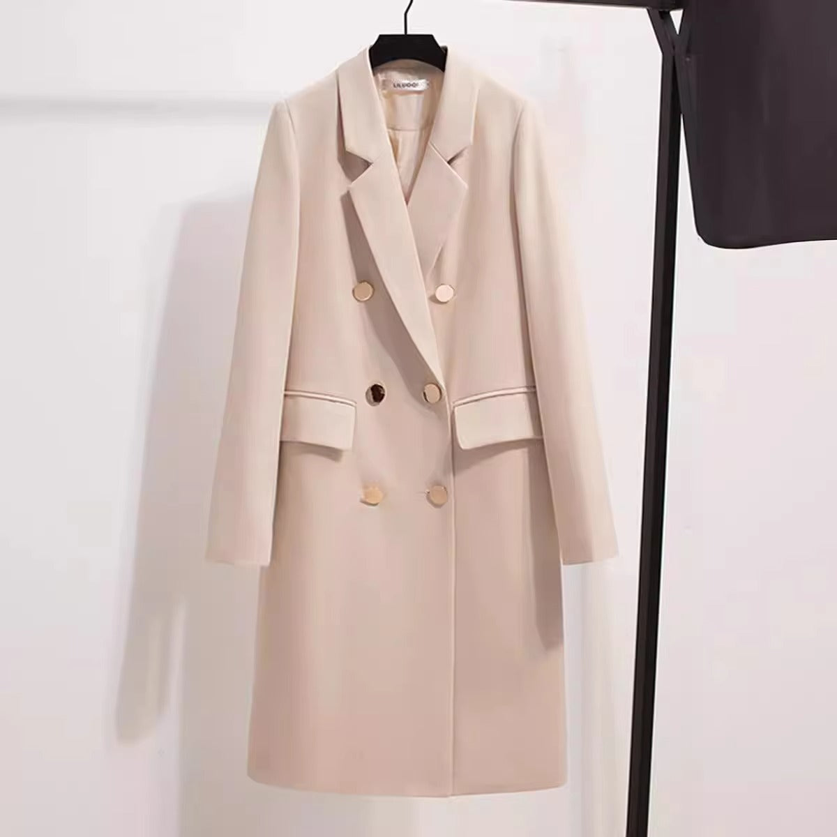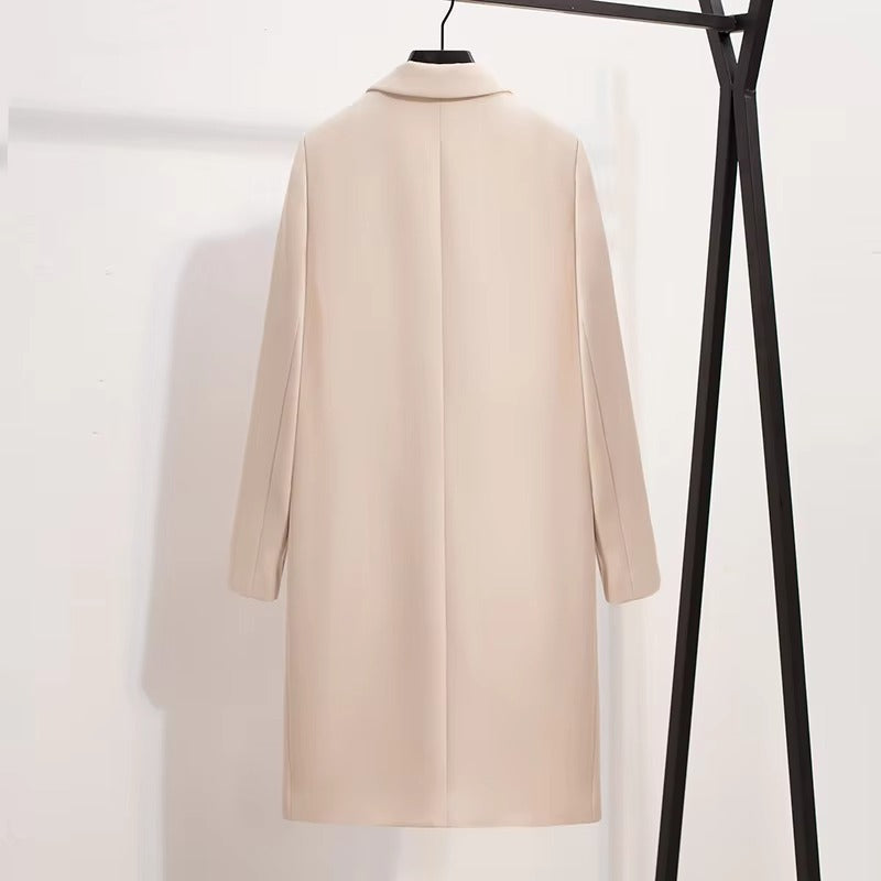 High-Quality Ladies' Double-Breasted Solid-Color Coat - Fashionable Lapel Design for Autumn/Winter Commute