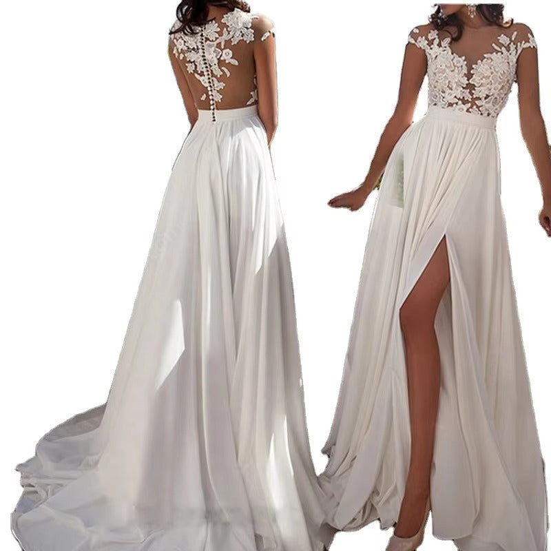 Modern Women's A-Line Wedding Party Dress Sexy Deep V-Neck Open Lace Backless Design Nightclub Evening Wear Plus Size Wholesale