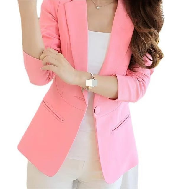 Spring and Autumn New Fashion Solid Color Elegant Short Long Sleeve Slim Single Button Professional Style Women's Suit Jacket