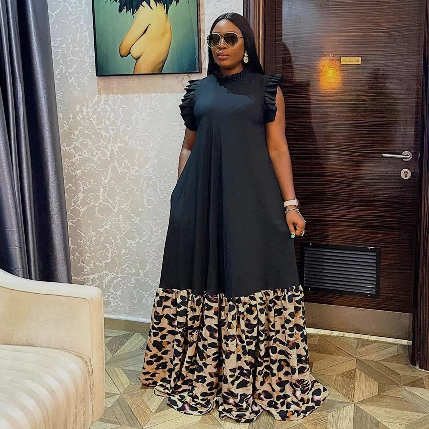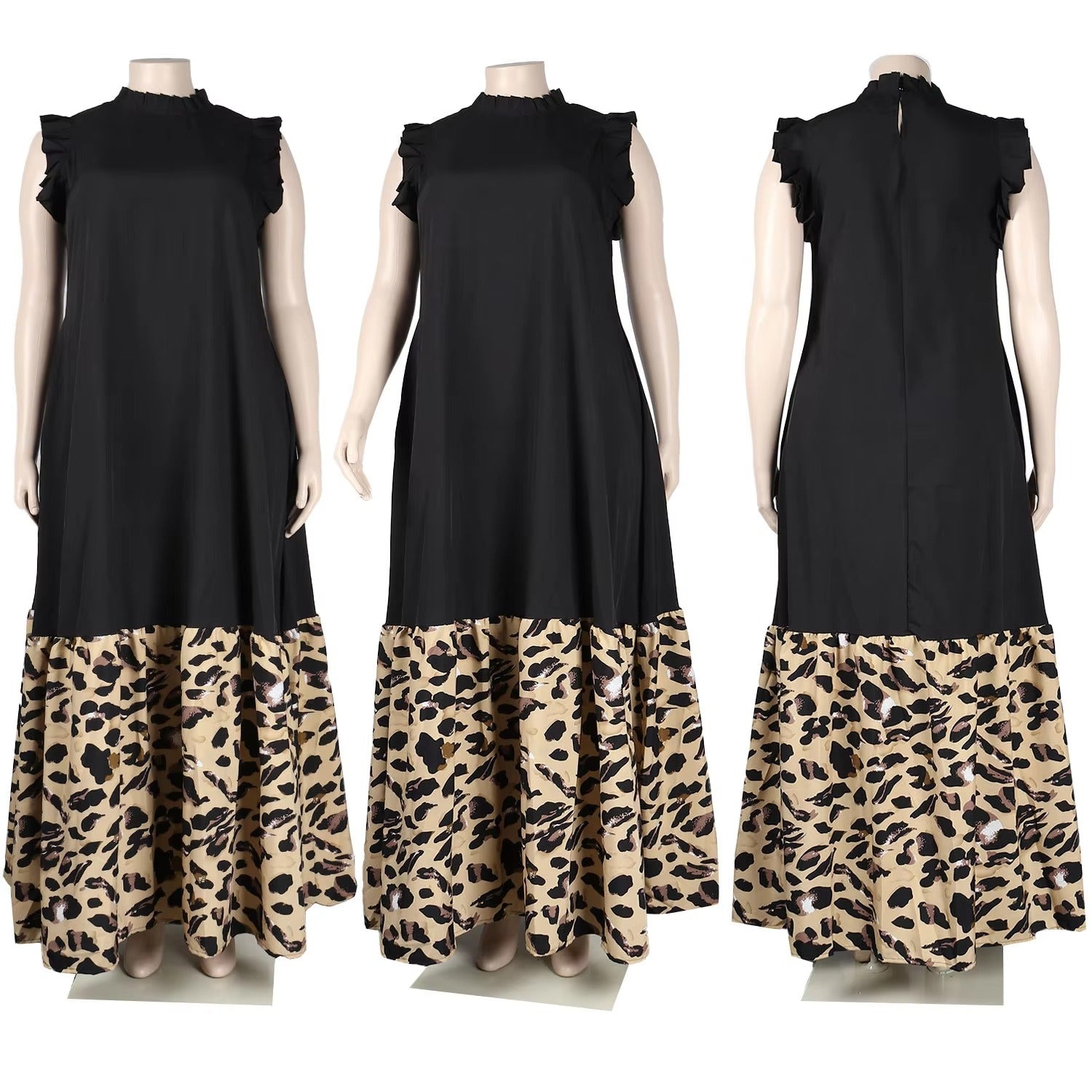 Women's Elegant Sleeveless Print Leopard Splicing Dress Large Size Leisure Loose Commuter Holiday Dress-for Summer Europe United